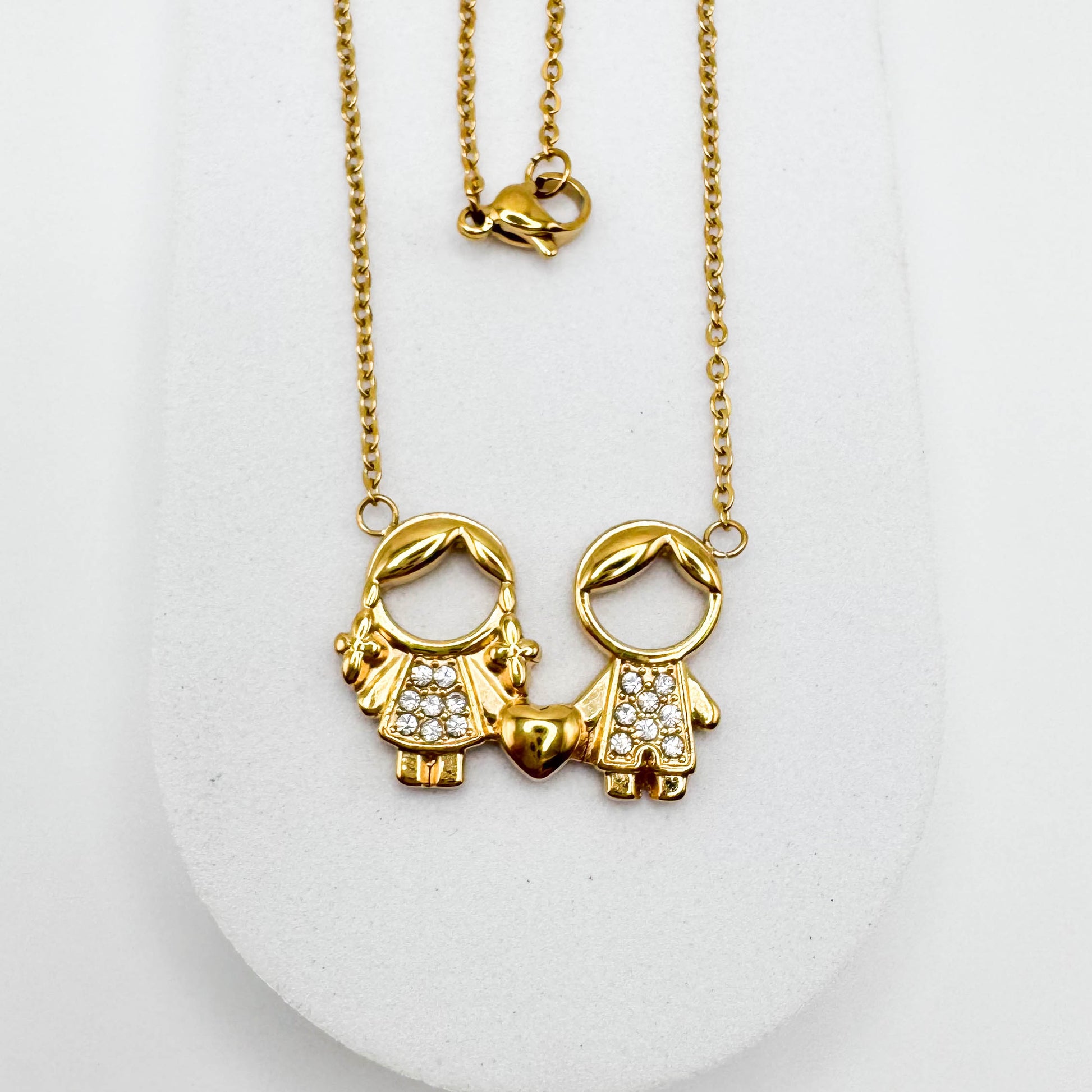 • Collar con colgante 1 NIÑA y 1 NIÑO bañado en oro de 18K.