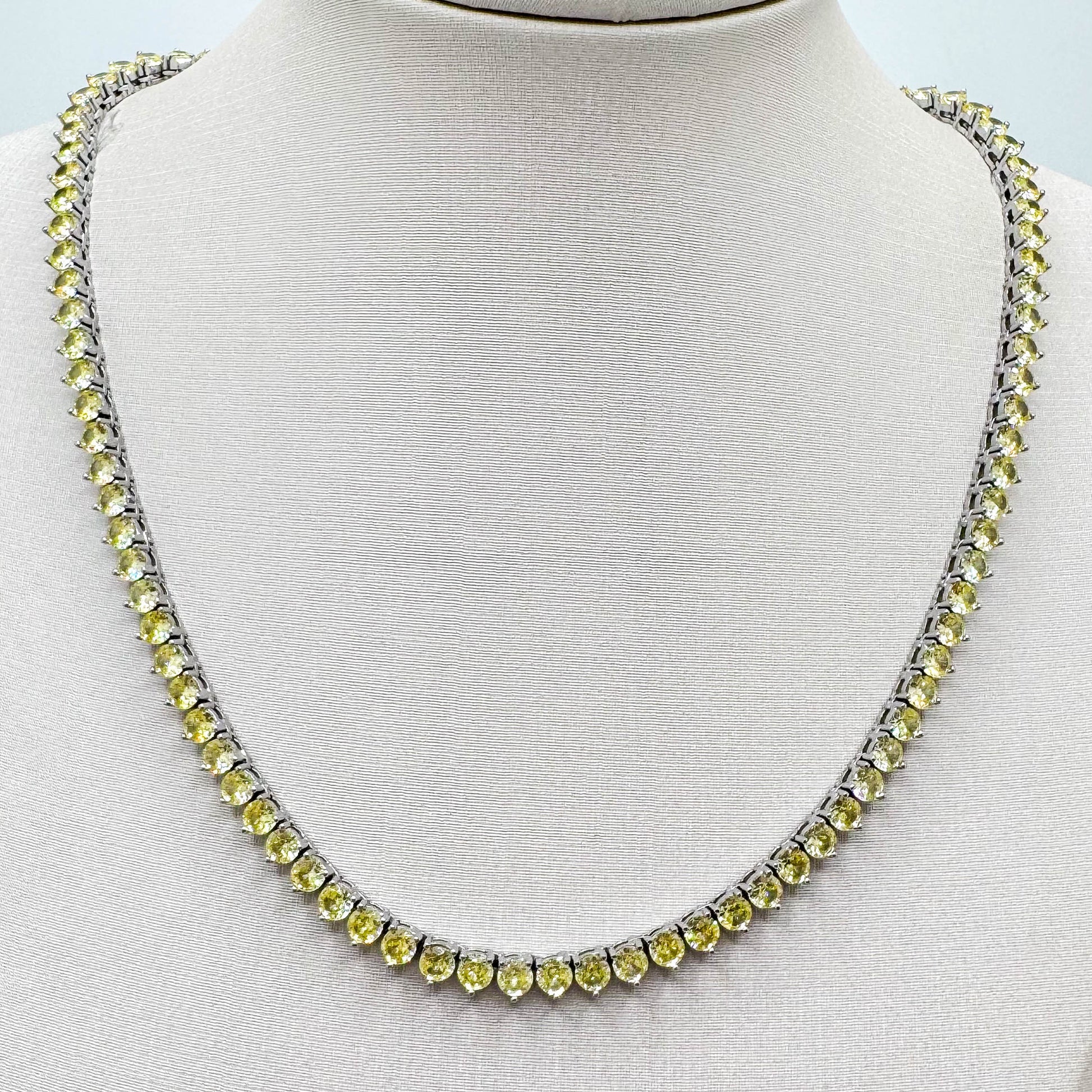 RHODIUM PLATED RIVIERA NECKLACE with 3MM Citrine cubic zirconia.