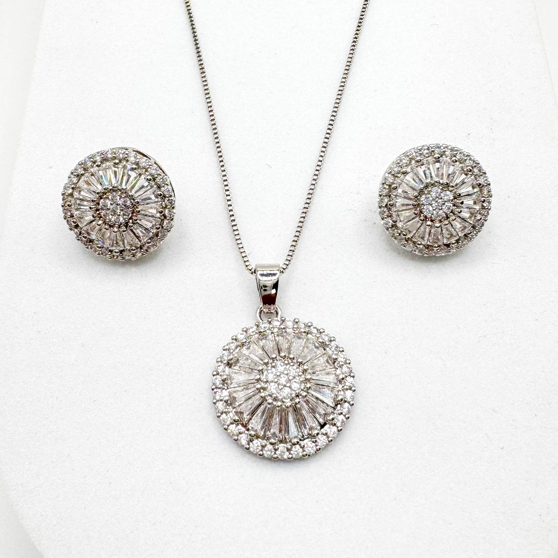 • Pendientes y collar con baño de rodio blanco engastado con piedra circonita.