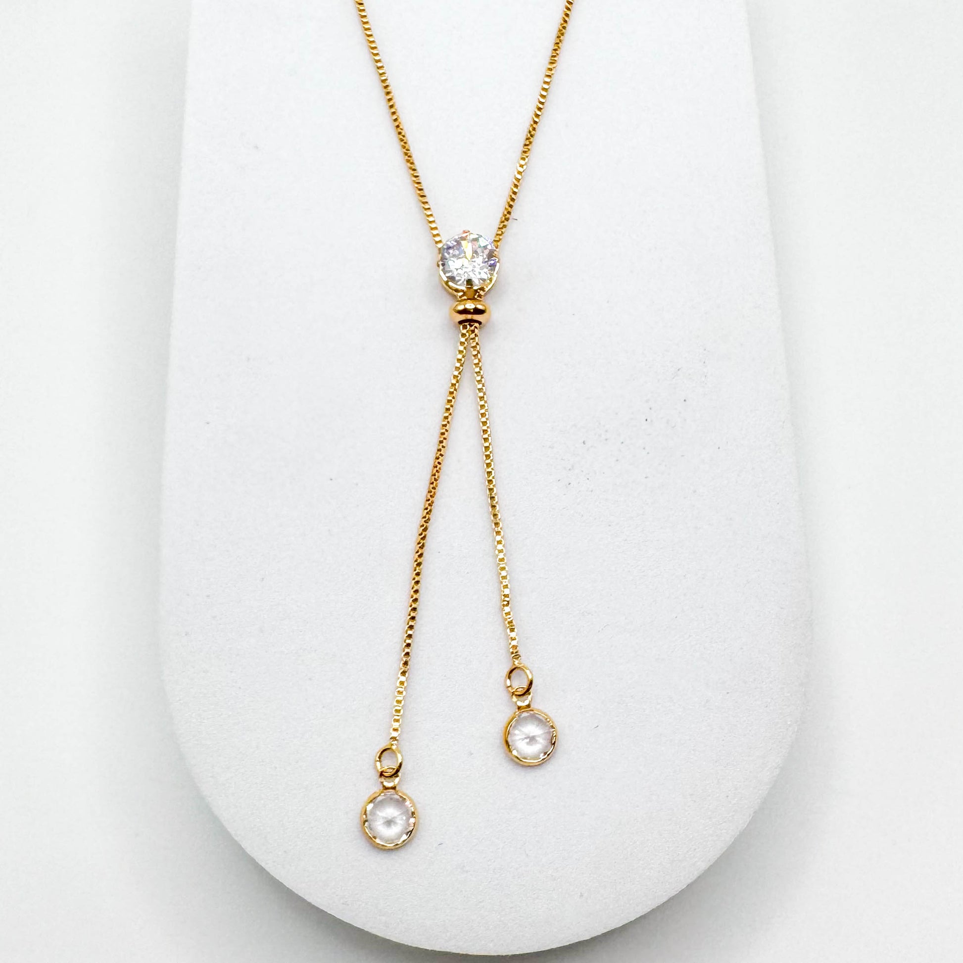 •Colar longo com pingente duplo de zircônias